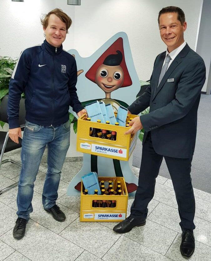 Unser langjähriger Sponsor, die Sparkasse Feldkirch überreichte uns zwei Kisten Bier für die nächste „3. Halbzeit“.